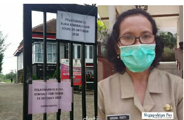 Krisnayekti Juru Bicara Gugus Tugas Penanganan Pencegahan Penyebaran Covid 19 mengatakan, karena ada pegawai yang terkonfirmsi positig maka kantor Dispendukcapil yang terletak di Satreyan, Kanigoro itu ditutup.