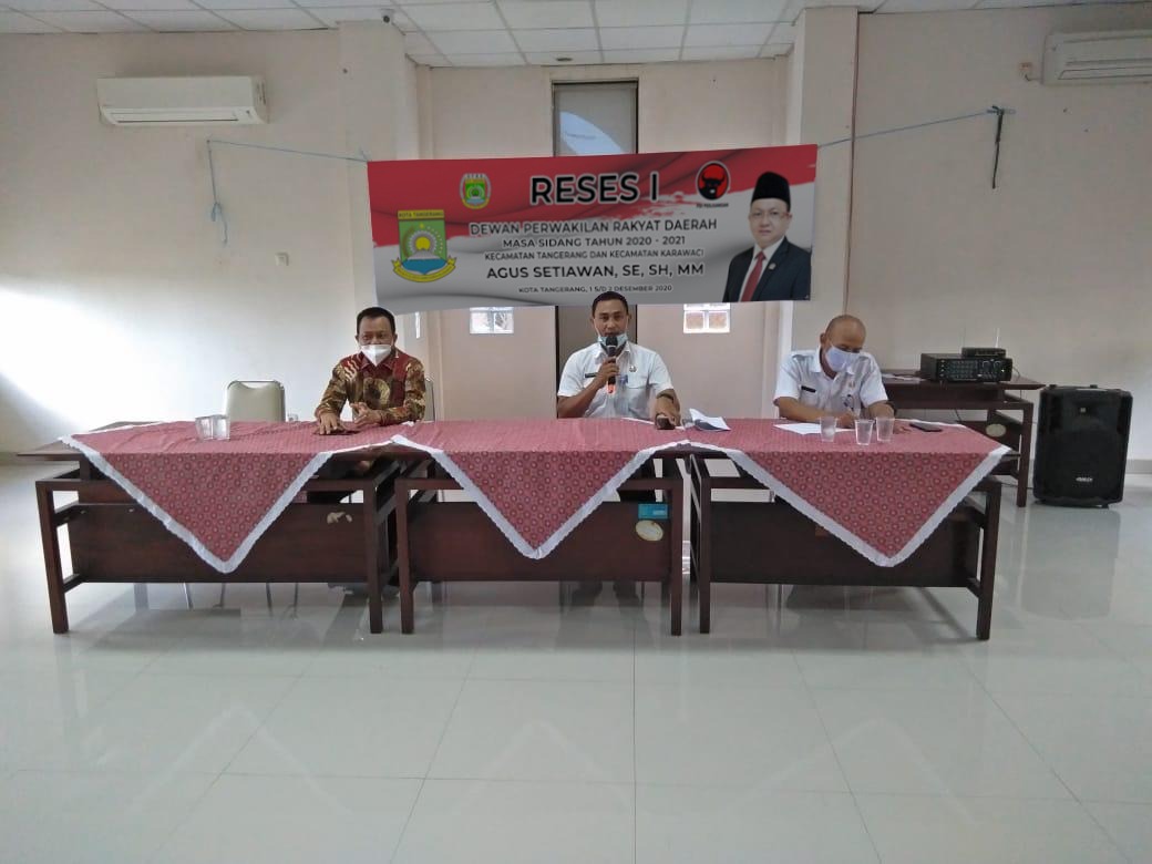 Kota Tangerang – Anggota Dewan Perwakilan Rakyat Daerah (DPRD) kota Tangerang Agus Setiawan SE dari fraksi PDIP menggelar reses ke I tahun 2020, di kantor kelurahan sukajadi kecamatan karawaci kota tangerang, Rabu (02/12/2020).