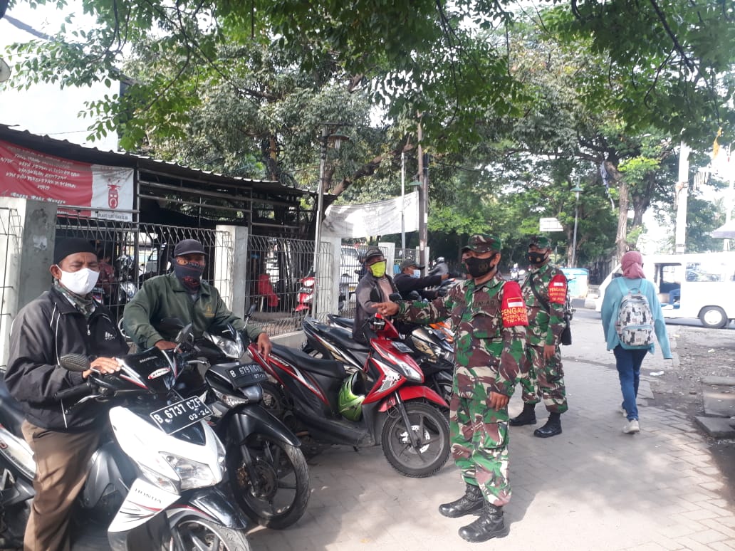 Kota Tangerang – Terus berupaya dalam memutus rantai penyebaran virus Covid-19, anggota Koramil 02/Btc Kodim 0506/Tgr melakukan pemantauan Penegakan Disiplin Mematuhi Protokol Kesehatan (PDMPK) di wilayah Kecamatan Batuceper Kota Tangerang, Minggu (04/10/2020).