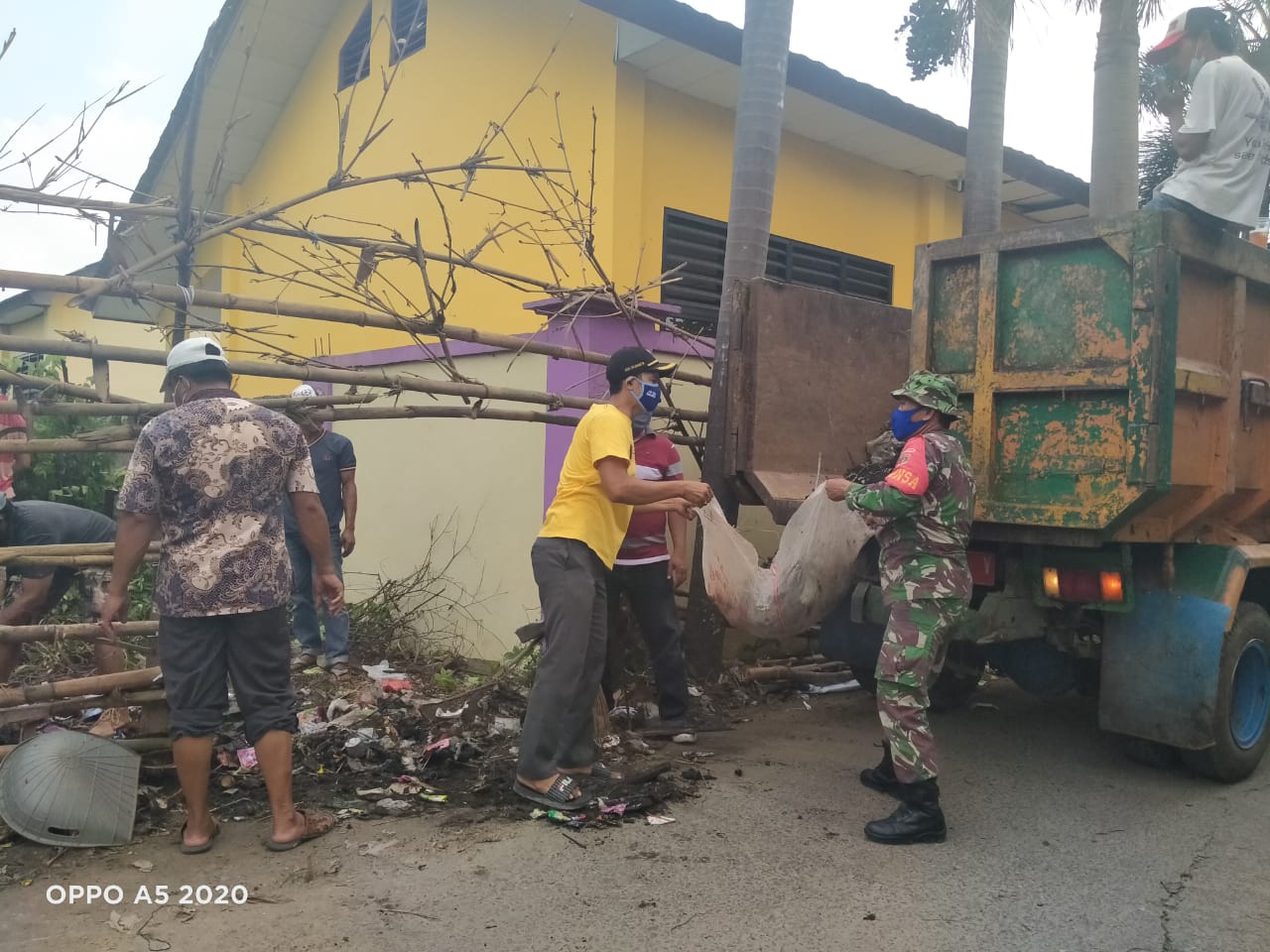 Kabupaten Tangerang – Mengantisipasi banjir di musim penghujan , anggota Koramil 04/Cikupa Kodim 0510/Trs Serka Suharto bersama warga Pasir Jaya bahu membahu membersihkan sampah dari saluran air di Desa Pasir Jaya Kecamatan Cikupa Kabupaten Tangerang, Kamis (29/10/2020).