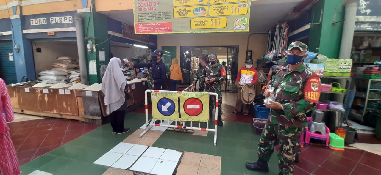 Danramil 14/Panongan Kapten Arm Hari Subagijono mengatakan, kegiatan PDMPK di pasar korelet untuk memutus penyebaran virus Covid 19 yang bersumber dari kerumunan masa yaitu pasar.