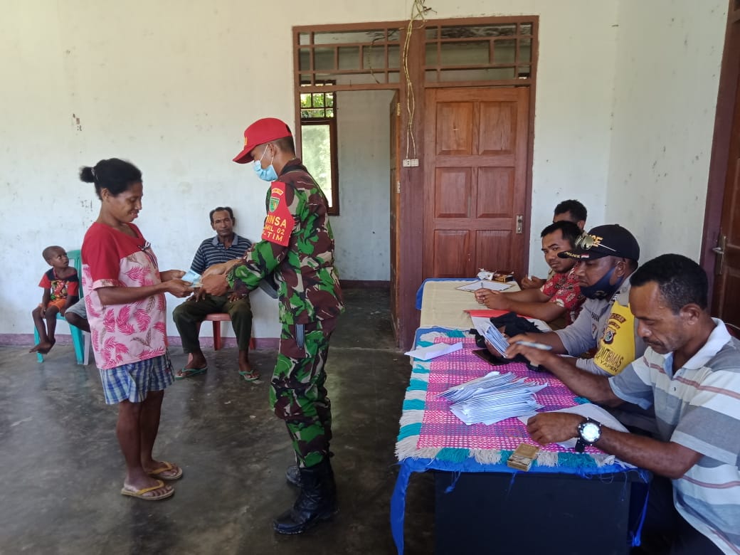 Yapen – Bertempat di Balai Kampung Woda, Babinsa Koramil 1709/Yawa Serda Patrik Dudo dan Praka Demianus bersama Bhabinkamtibmas Polsek Yapen Timur, melaksanakan pendampingan dan pengawalan kegiatan penyaluran Bantuan Langsung Tunai Dana Desa (BLT DD) kepada warga Kampung Woda, Distrik Raimbawi, Kab. Kep. Yapen, Selasa (15/12/2020).
