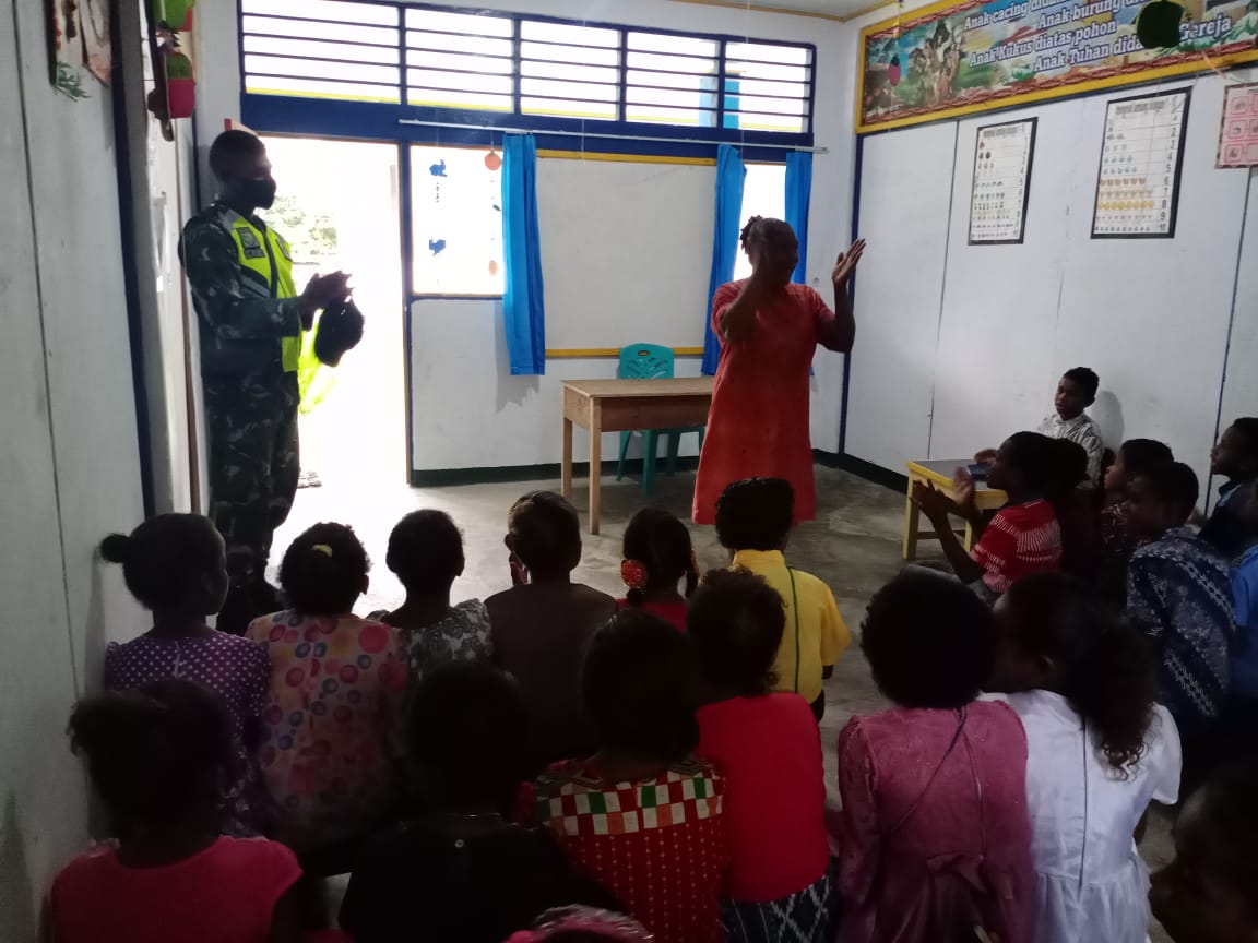Ibadah sekolah minggu dipimpin oleh pengasuh ibu Lena Rumakiek, yang mana kehadiran Babinsa mendapatkan respon yang baik, dan juga mengapreasiasi sikap Babinsa yang selalu ada di tengah-tengah masyarakat khususnya dalam hal keagamaan.