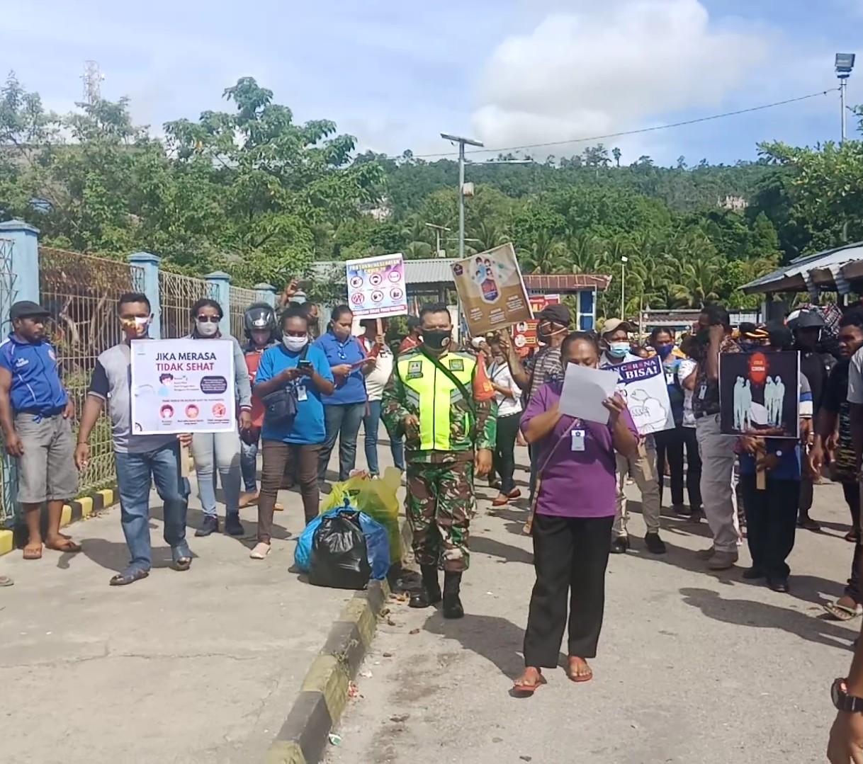 Biak – Wabah Corona merupakan hal yang nyata dan bukan konspirasi. Terlebih di Indonesia kini kasus positif Covid-19 masih terus bertambah setiap hari. Duta Perubahan Perilaku bersinergi bersama Babinsa Koramil 1708-01/Biak Kota Kodim 1708/Biak Numfor menggelar kegiatan sosialisasi perubahan perilaku protokol kesehatan pencegahan Covid-19 melaksanakan 3M dan bagi masker gratis Kepada masyarakat Kabupaten Biak Numfor, Selasa (29/12/2020).