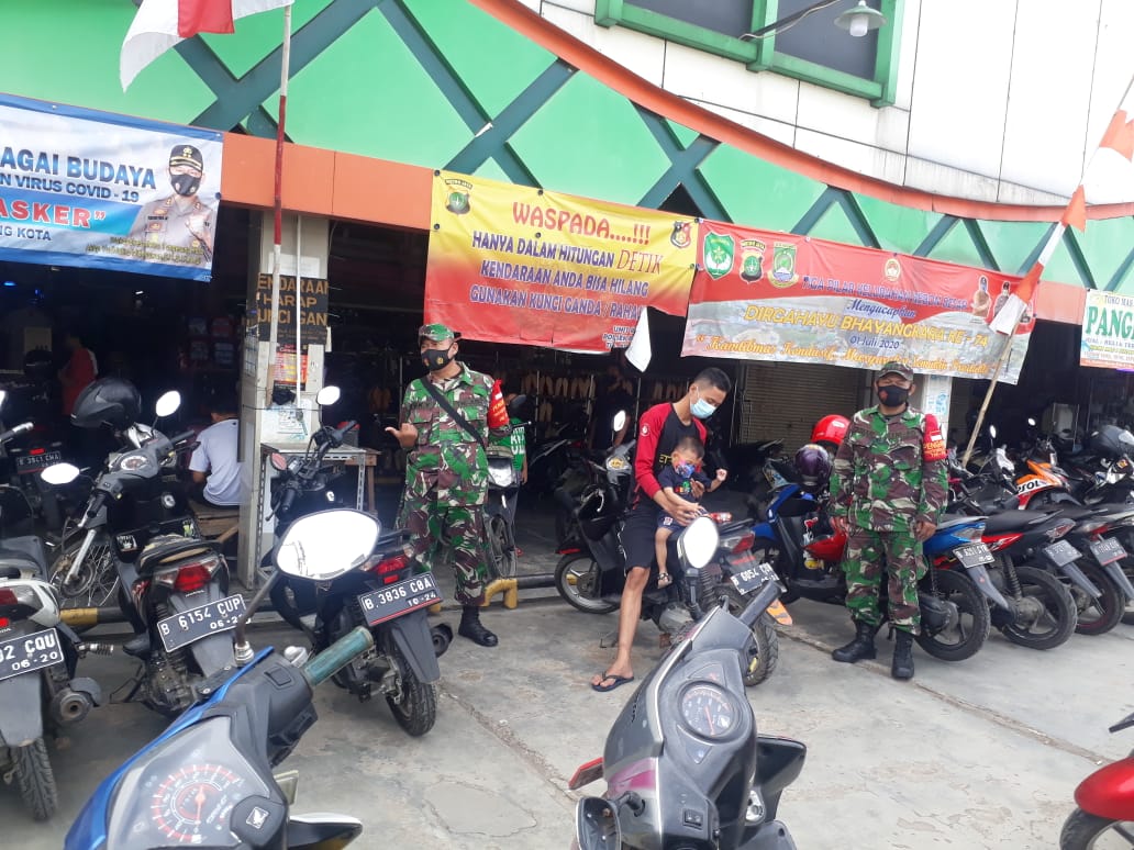 Kota Tangerang – Hari Minggu Personil Babinsa Koramil 02/Batuceper Kodim 0506/Tgr terus melakukan pencegahan penyebaran virus Covid-19, dengan melaksanakan kegiatan Penegakan Disiplin Mematuhi Protokol Kesehatan (PDMPK) yang dilaksanakan Pos Pantau Pasar Kebon Besar Kelurahan Kebon Besar Kecamatan Batuceper Kota Tangerang, Minggu (04/10/2020).