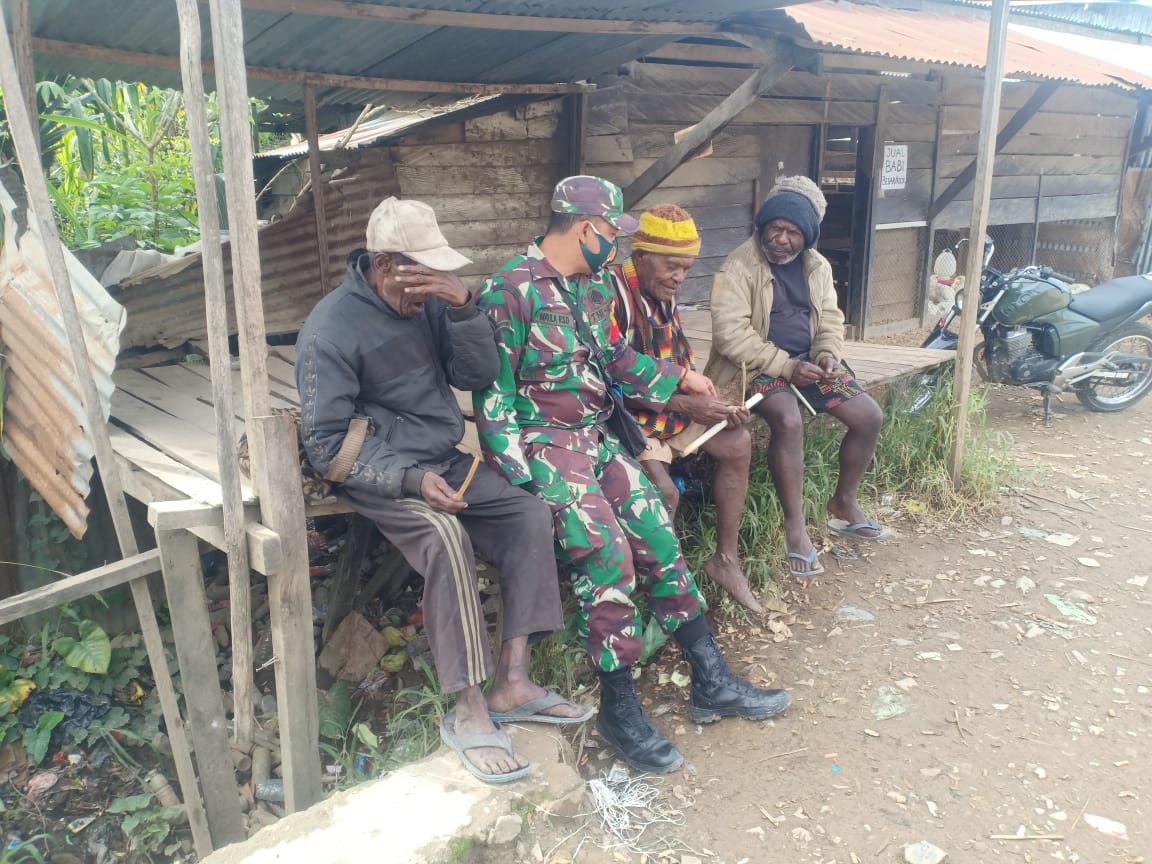 Dogiyai – Bertempat di Kampung Mauwa Babinsa Koramil 1705 – 06/Moanemani Serda Maula Rosodi melaksanakan komsos bersama Tokoh Pemuda dan masyarakat kampung Mauwa, Rabu (30/12/1/20).