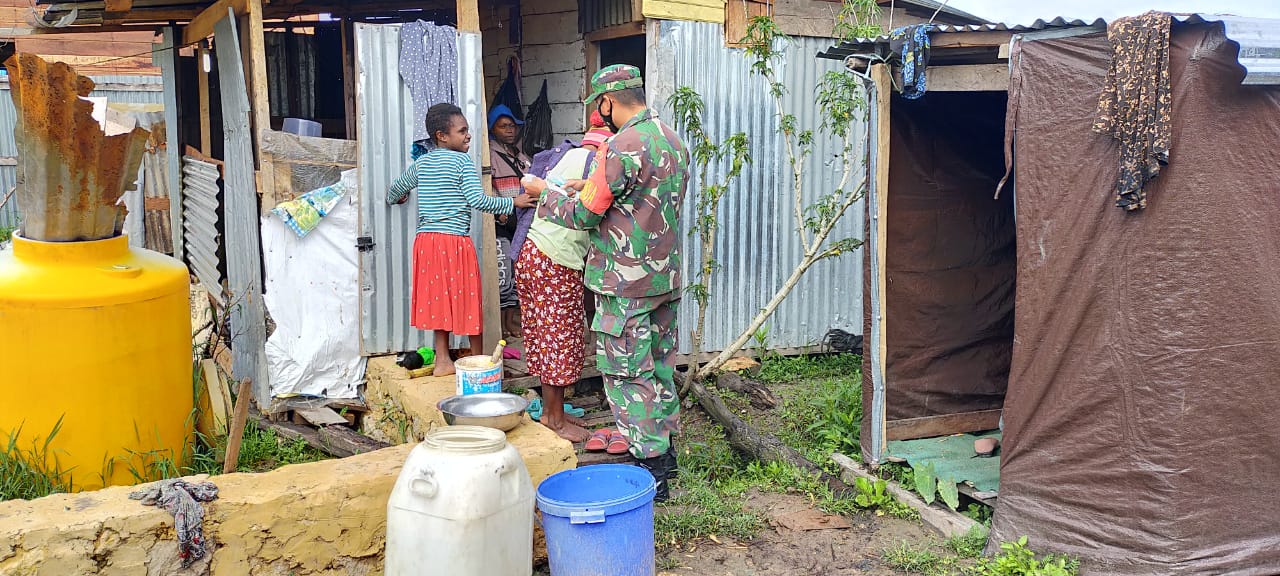 Madi – Bertempat di kampung Timida Distrik Paniai Timur Kab.Paniai, Babinsa Koramil 1705-02/Enarotali, (Serka Wardi Hermawan dan Serda Iksan), melaksanakan Komsos dengan Warga Binaan dan bagikan masker, Senin (28/12/20).