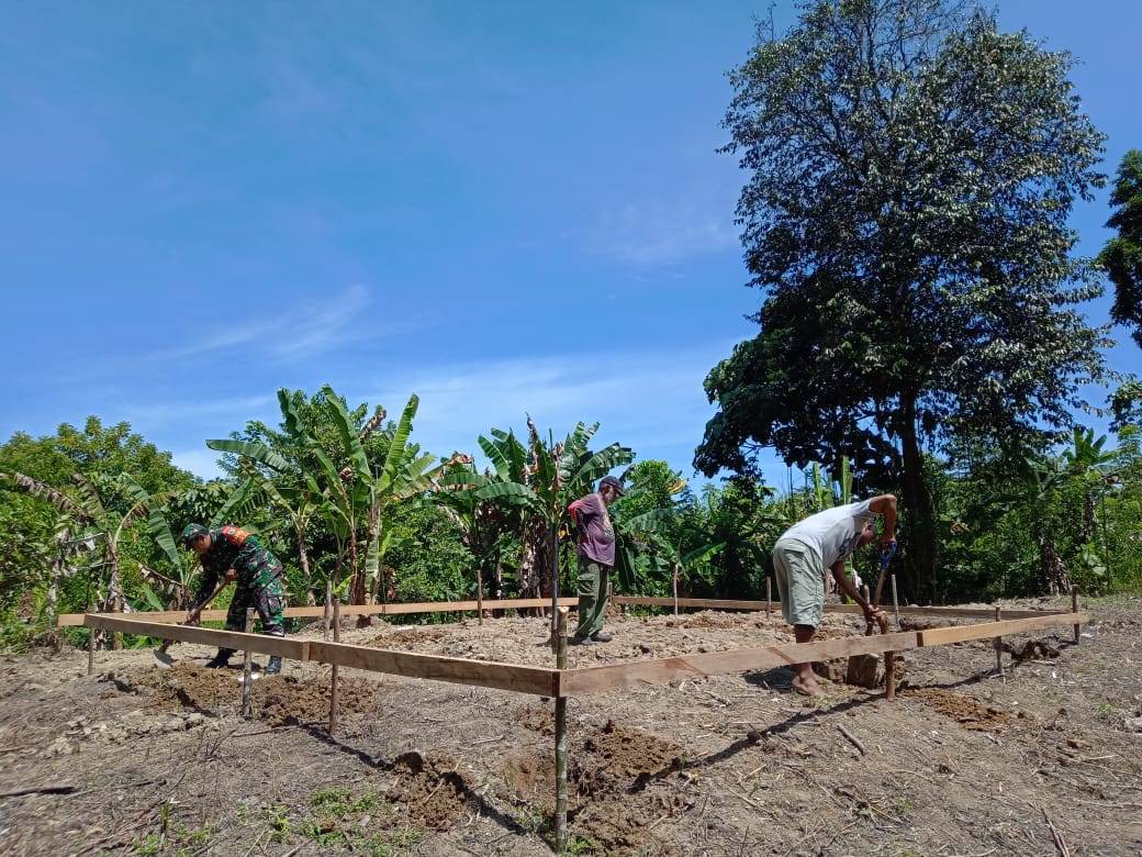 Pekerjaan yang dilakukannya bersama-sama dengan warga sekitar dan pemilik bangunan rumah yang akan dibangun nantinya ini, diawali dengan pengukuran tanah, pemasangan bowplank (patok kayu sementara) dan dilanjutkan dengan penggalian lubang pondasi, ungkap Kopda Aca.