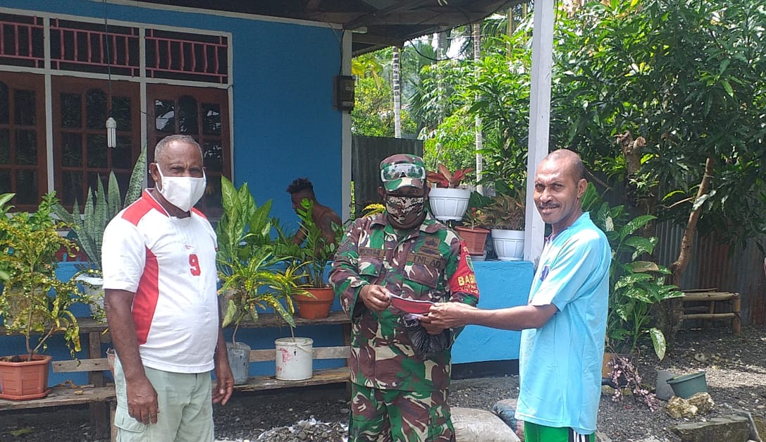 Yapen – Menyikapi masa pandemi Covid-19 yang sampai sekarang belum juga berakhir, Babinsa Koramil 1709-04/Yapbar Serma Anaklektus Worumi yang juga menjabat sebagai Danpos Ramil di Distrik Windesi, Kab. Kep. Yapen, tetap konsisten mengajak warga di desa binaannya, untuk tetap mematuhi protokol kesehatan sesuai dengan anjuran dari pemerintah, Minggu (01/11/2020).