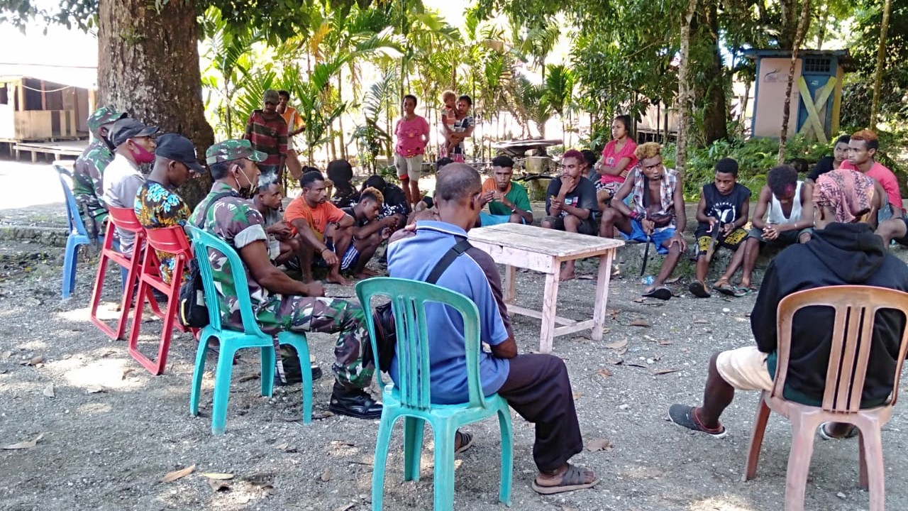 Yapen – Dalam rangka memberdayakan peranan dan fungsi pemuda di desa binaan, Babinsa Koramil 1709-01/Yapsel Serka Robert Bosayor dan Sertu Ruben Luis Way bersama dengan Kepala Kampung Wanampompi Abihut Arobaya, memberikan bantuan kepada Karang Taruna Kampung Wanampompi, Distrik Angkaisera, Kab. Kep. Yapen, Senin (28/12/2020).
