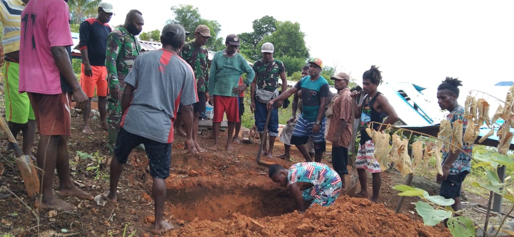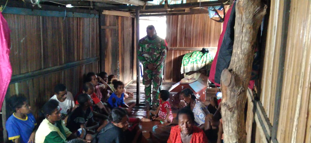 Yapen – Mendengar kabar ada warganya meninggal dunia, Babinsa Koramil 1709-04/Yapbar Sertu Klemens Kandam langsung bergegas melayat ke rumah duka Almarhum Opini Tarasen yang merupakan Bendahara Kampung Yarori, Distrik Yapen Barat, Kab. Kep. Yapen, yang meninggal karena sakit, Minggu (13/12/2020).