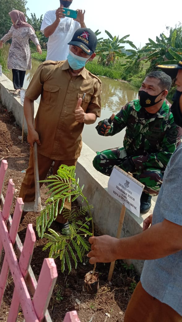 Penanaman pohon hadir di hadiri, H Tibi Camat Kronjo, Ruslan Kasi Satpol PP Kecamatan Kronjo, Ridwan Kades Kades Cirumpak, Sihayar Kordinator BPP Kronjo, IPDA Warsito Kanit Binamas dan Sertu Ahmad Babinsa Desa Cirumpak serta para Jaro Desa Cirumpak.(nan)