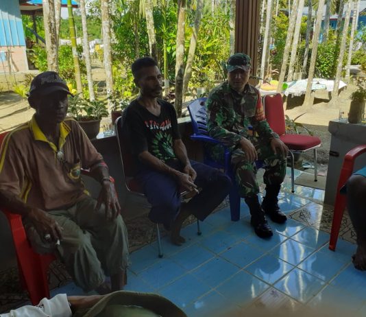 Enarotali - Bertempat di Kelurahan Enarotali Distrik Paniai Timur Kab.Paniai,Babinsa Koramil 1705-02/Enarotali(Serda M.Tappi) melaksanakan kegiatan komunikasi sosial (Komsos) dengan masyarakat binaan, Selasa (05/01/21).