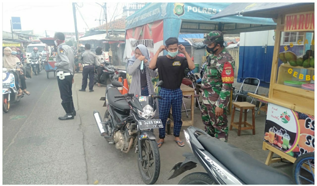 Kabupaten Tangerang – Membantu percepatan penanganan Covid-19, Koramil 10/Sepatan Kodim 0510/Trs secara rutin melakukan PDMPK di pasar tradisional di wilayah Koramil 10/Sepatan.