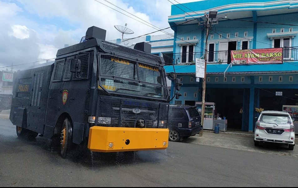 Kapolres Pagaralam AKBP Dolly Gumara melalui Kasat Sabhara AKP Biladi Oestin menjelaskan, hari ini (Selasa, 21/11/20) pihaknya mengerahkan kendaraan Water Canon untuk menyemprotkan disinfektan keberbagai sudut di Kota Pagaralam dengan harapan meminimalisir pergerakkan virus yang bermula dari daratan Tiongkok (Wuhan) ini.