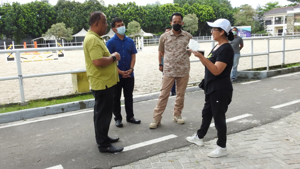 Kabupaten Tangerang – Menjelang uji coba Cinta Indonesia Open (Cio) Dandim 0510/Trs Letkol Inf Bangun I.E Siregar mendampingi Danrem 052/Wkr Brigjen TNI Purwito Hadi Wardono bersilaturahmi ke Ketua Umum (Ketum) Koni Pusat Letjen Purnawirawan Marciano Norman di Adria Pratama Mulya APM Equestrian centre Desa Tapos Kecamatan Tigaraksa Kabupaten Tangerang, Sabtu (24/10/2020).