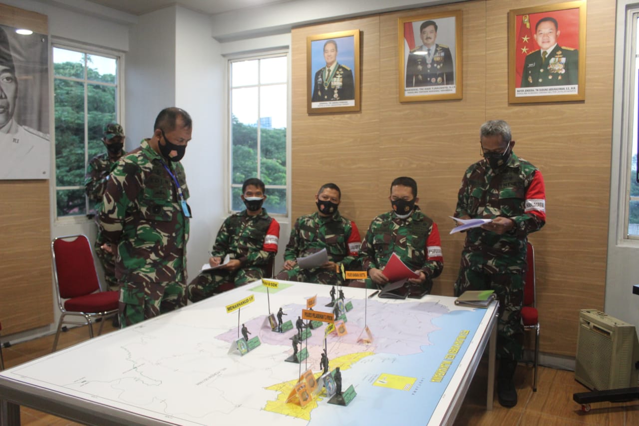 Kabupaten Tangerang – Dalam rangka membantu Pemerintah Daerah di wilayah Korem 052/Wkr Dandim 0510/Trs Letkol Inf Bangun I.E Siregar mengikuti latihan Geladi Posko I di Makorem 052/Wkr yang dibuka oleh Pangdam Jaya/Jayakarta yang diwakili oleh Kapoksahli Brigjen TNI Wahyudin di Makoramil 052/Wkr, Rabu (21/10/2020).