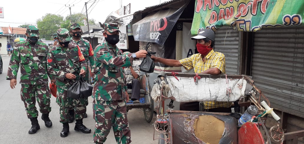 Lebih lanjut Danramil menambahkan, pembagian Sembako di lakukan di sepanjang jalan raya pasar kresek untuk pengayuh becak.