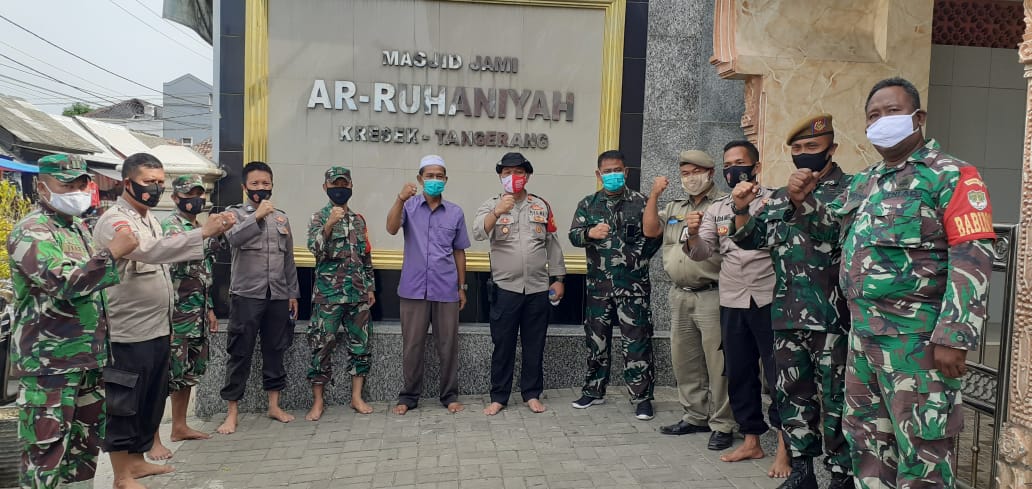 Danramil 07/Kresek Kapten Inf M Ridwan Idrus menyampaikan, Jumat Bersih yang dilakukan bersama tiga pilar berupa penyemprotan cairan disinfektan dan pembersihan bersama di lingkungan Masjid Ar-Ruhaniyah.