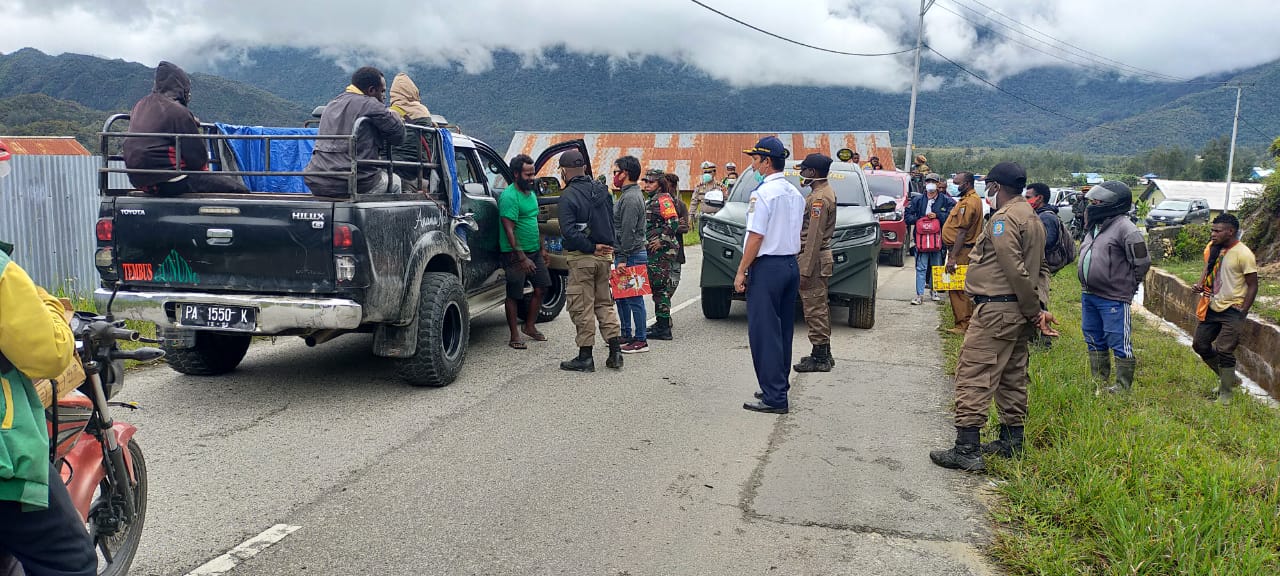 Kabupaten Paniai – Danramil 1705-02/Enarotali Mayor CHB Marina, pimpin pemantauan posko covid 19 dalam pengecekan surat rapites dari dari daerah asal bersama Polri dan Pemda Kab. Paniai, bertempat di pintu masuk pertama menuju Kab. Paniai.