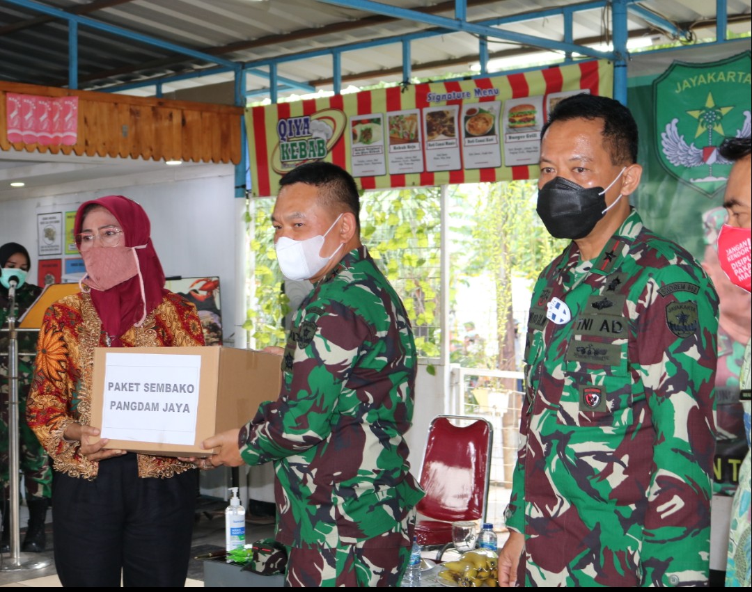 Baksos Pangdam Jaya/Jayakarta berupa menyumbangkan 1.010 Paket Sembako kepada orang yang kurang mampu dan para pekerja sosial warga Pademangan Jakut.