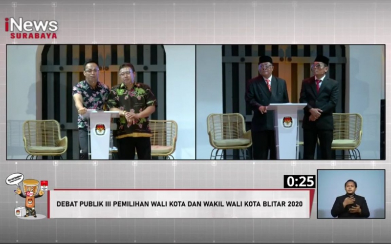 Blitar – Putaran ke 3 atau putaran terakhir debat publik pemilihan calon Walikota dan Wakil Walikota Blitar (25/11/20) dilaksanakan KPU Kota Blitar bertempat di gedung kesenian kota Blitar jalan Kenari Kelurahan Plosokerep, dengan tema “Pembangunan dan Ekonomi”,seperti pada gelaran debat pertama dan ke dua pasangan Henri Pradipta Anwar-Yasin Hermanto,Henri calon Walikota masih terkesan agresif dan cenderung menjatuhkan paslon Santoso-Tjutjuk (ini yang terlontar dari kalangan masyarakat netral kota Blitar. Red)