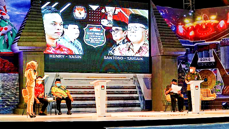 Dalam debat publik paslon nomor urut 1 Henry Pradipta Anwar-Yasin Hermanto lebih terkesan agresif menyerang dan mengkritik lawan pasangan Petahana nomor urut 2 Santoso-Tjutjuk Sunario, misalnya tentang program pembelajaran daring selama covid 19, pemberian bansos, peningkatan gaji pekerja sosial pendidikan, serta peningkatan kwsejaheraan UMKM yang diklaim oleh paslon Henry-Yasin menjadi programnya, juga program lain yang dianggap tidak berjalan.