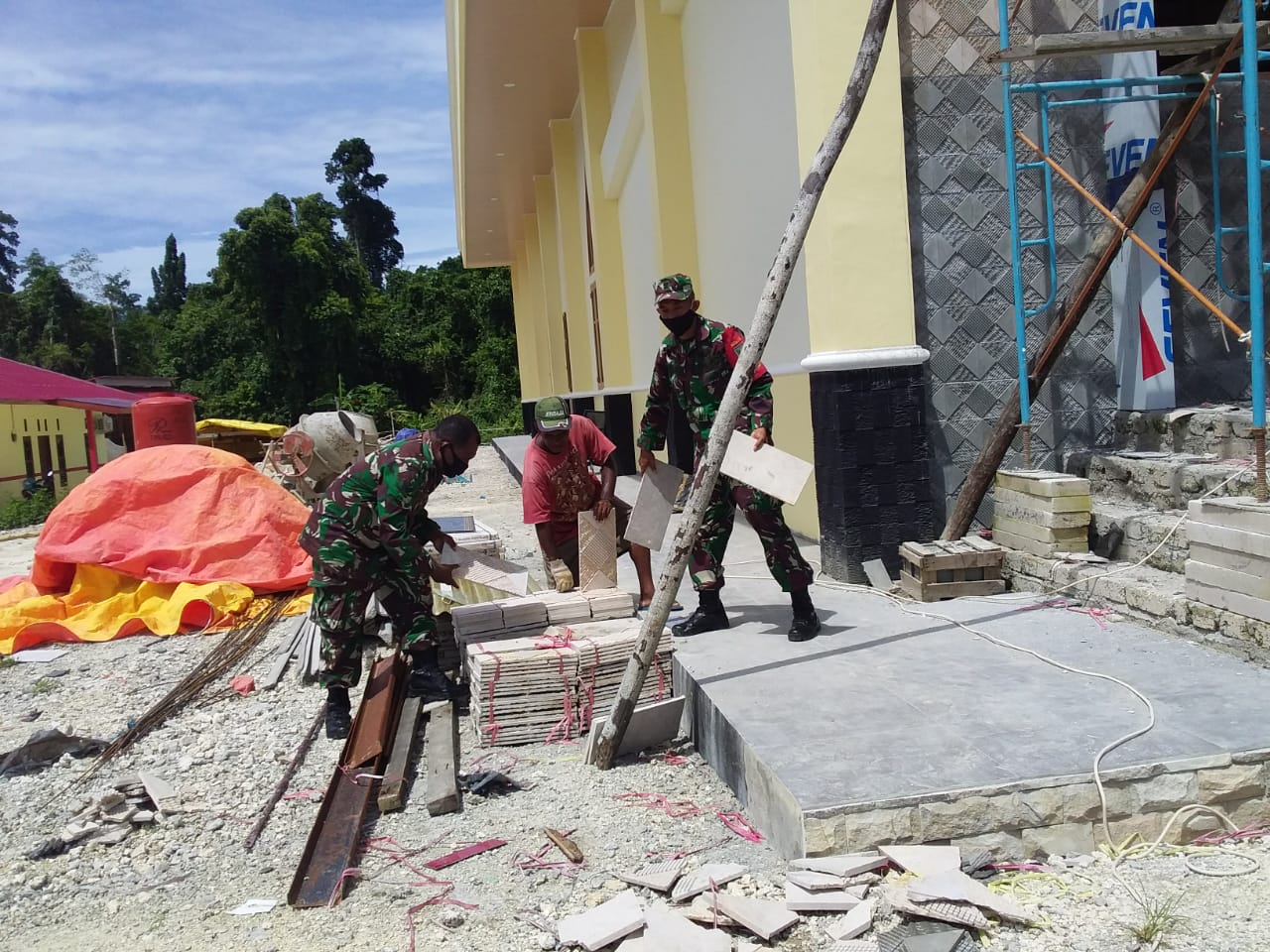 Biak Timur – Babinsa posramil 1708-01/Biak Timur Sertu Dodik dan Sertu Arwam melaksanakan kegiatan Karya Bakti pembangunan Gereja GPDI Yerusalem Baru Kp. Anggopi Distrik Oridek.(02/01/2021)
