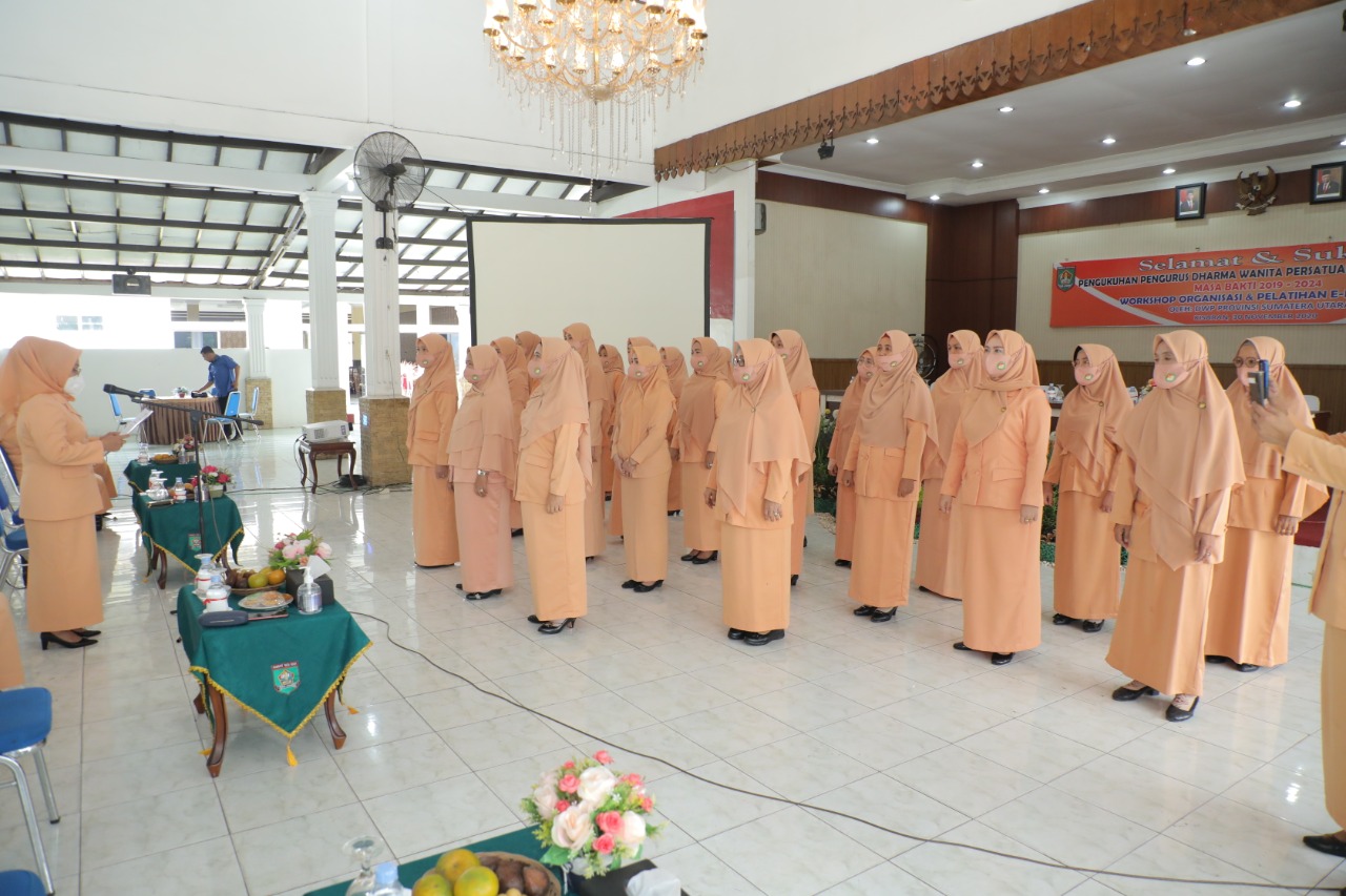 Asahan – Pengukuhan Pengurus Dharma Wanita Persatuan Kabupaten Asahan masa bakti 2019 – 2024 dan Workshop Organisasi dan pelatihan e-reporting oleh Dharma Wanita Persatuan Provinsi Sumatera Utara digelar di Aula Rumah Dinas Bupati Asahan, Senin (30/11/20).