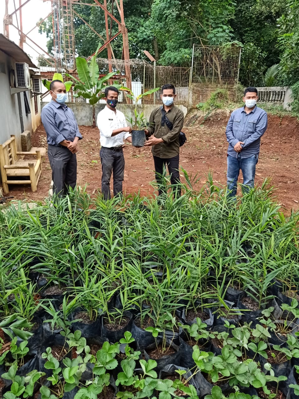 Kabupaten Tangerang – Satuan Intelkam Polresta Tangerang menggandeng salah satu Kepala Desa Pangkat, Kecamatan Jayanti – Kabupaten Tangerang, untuk memanfaatkan lahan kosong di belakang halaman kantor, dengan menanam pohon Jahe Merah, Strawberry, Rabu (16/12/2020).