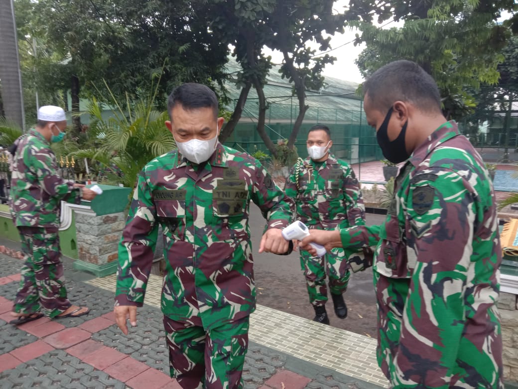 Protokol kesehatan terus di berlakukan seperti penggunaan masker dan jaga jarak tetap di berlakukan.Hal tersebut untuk mencegah penyebaran virus Covid-19 di Kodam Jaya/Jayakarta.