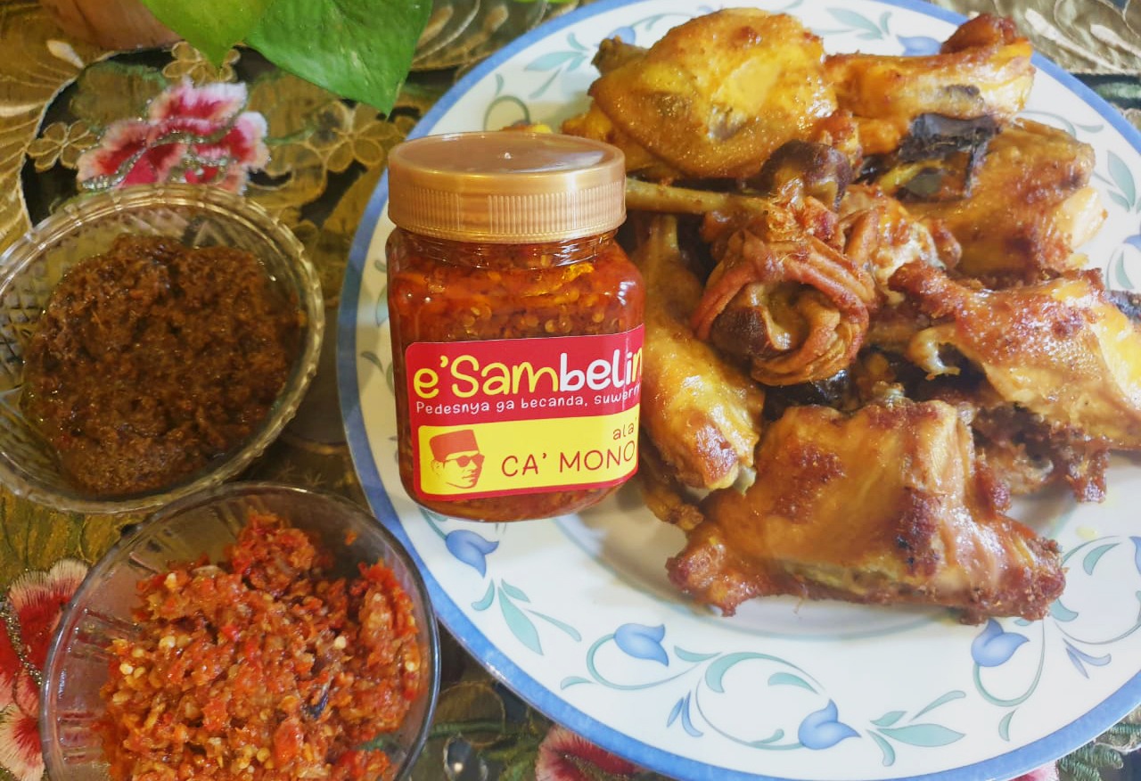 “Ayam dan bebek ongkep e-Sambelin ini tinggal digoreng oleh konsumen dengan pendamping tetap sambel dari e-Sambelin. Praktis kan?,” imbuh Cak Mono.