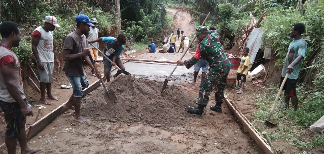 Mathias (30) salah satu warga yang ikut kerja bakti menyampaikan banyak terima kasih kepada Babinsa yang ikut terjun langsung membantu warga dalam pengecoran jalan masuk kampung Barapasi.