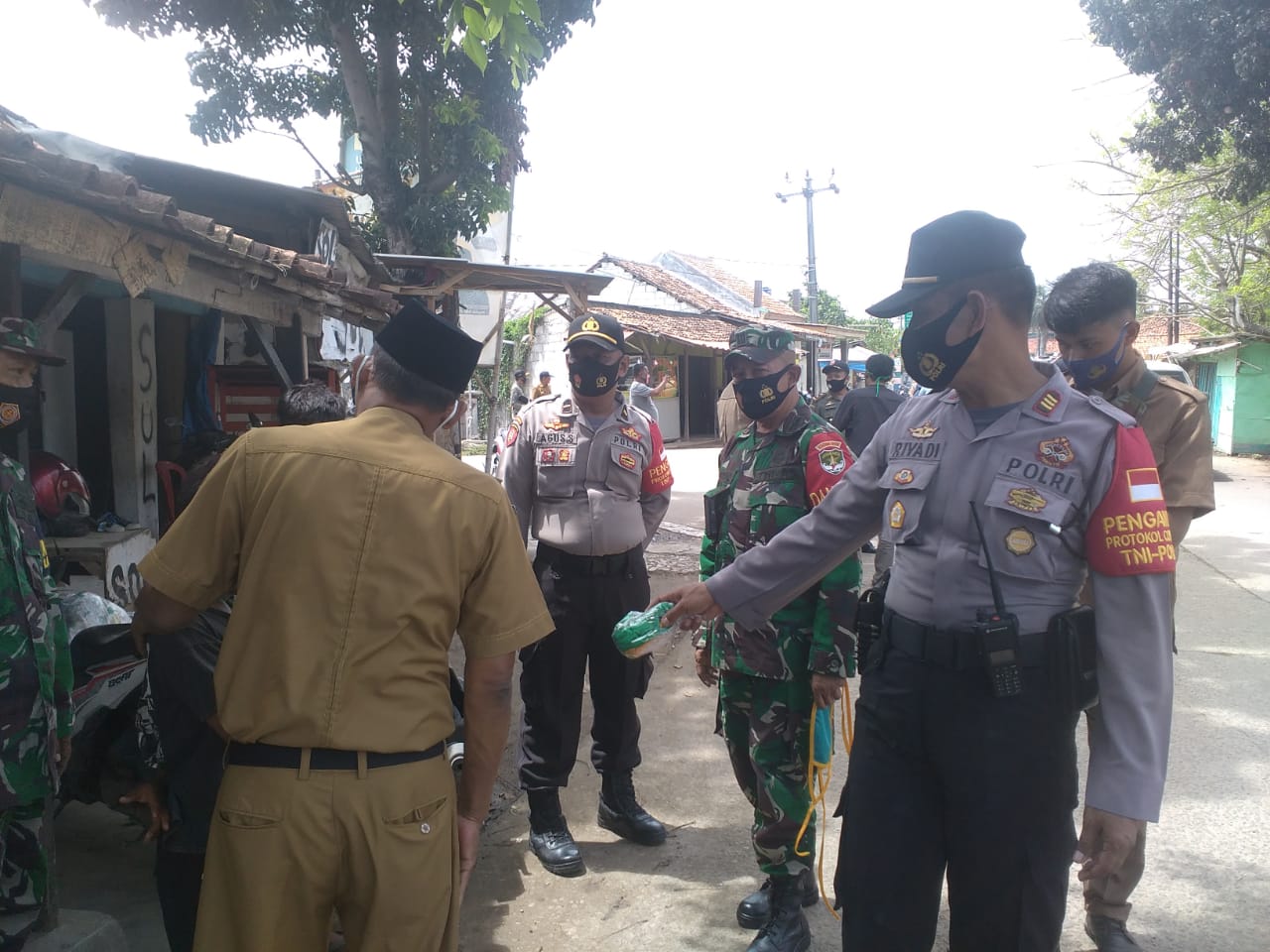 Koramil 08/Kronjo bersama Polsek Kronjo dan Muspika Kecamatan Kronjo melakukan operasi yustisi di jalan raya Kronjo Kabupaten Tangerang, Kamis (31/12/2020).