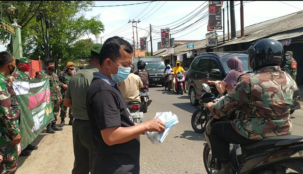 Danramil 02 Curug Kapten Inf. Dwi Saputro mengatakan, masker yang dibagikan kepada warga sekitar 3.000 buah, sasarannya adalah pengendara roda 2 dan roda 4 yang melintas.
