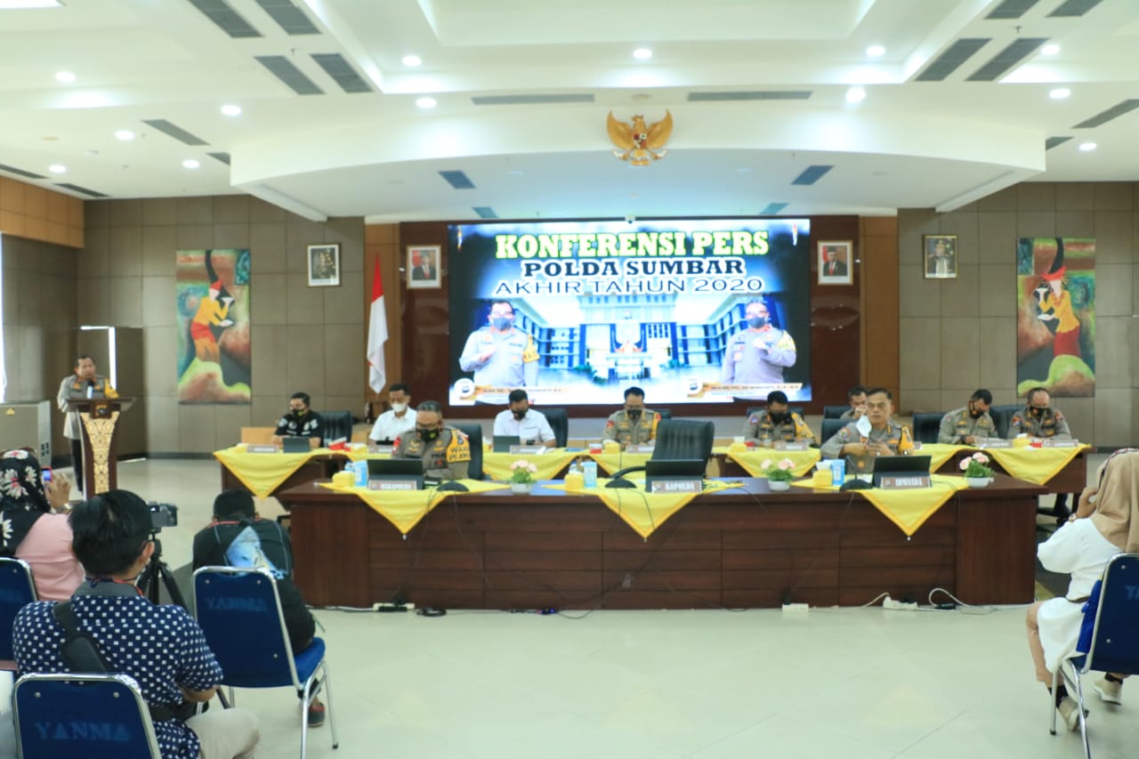 Toni hermanto menyampakan kepada awak media lewat jumpa pers dalam rangka Konferensi pers Akhir Tahun 2020 Polda Sumbar diruangan mapolda lantai IV di Polda Sumbar, Kamis , 31/12/20.