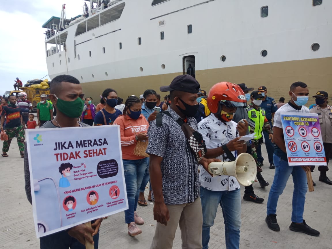Biak – Kodim 1708/BN menggandeng masyarakat dalam upaya menggalakkan disiplin protokol Covid 19 sebagai bentuk keperdulian Pemerintah dalam upaya memutus penyebaran Virus Corona di Kab. Biak Numfor(21/12/20).