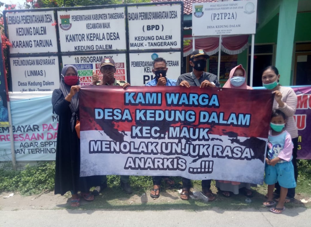 Salah satu warga Desa Kedung Dalam Kecamatan Mauk kepada wartawan, Sabtu (17/10/2020) mengatakan, pemasangan sepanduk ini merupakan aspirasi warga untuk menolak unjuk rasa anarkis bagi siapa saya.