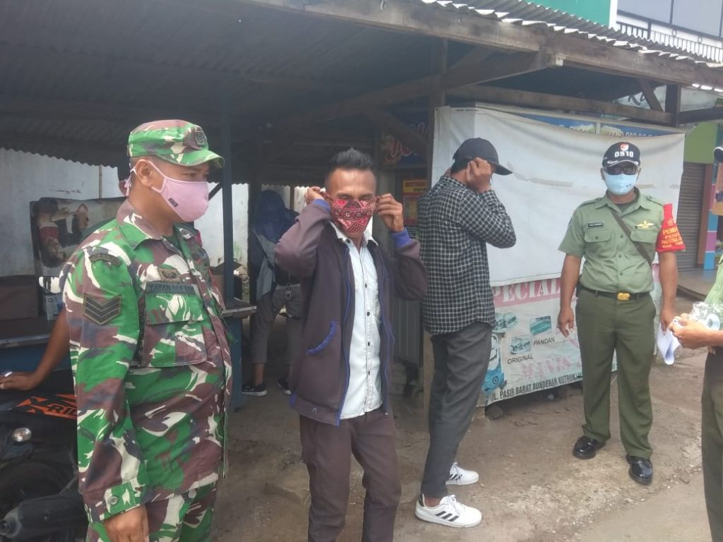 Danramil 06/Trs Kapten Arh P Sihotang, Selasa (29/09/2020) menyampaikan, bersama Muspika Kecamatan dan Polsek terus melaksanakan kegiatan Pemantauan Penegakan Disiplin Mematuhi Protokol Kesehatan ( PDMPK ) dengan melakukan operasi yustisi dan edukasi penyebatan Covid-19.