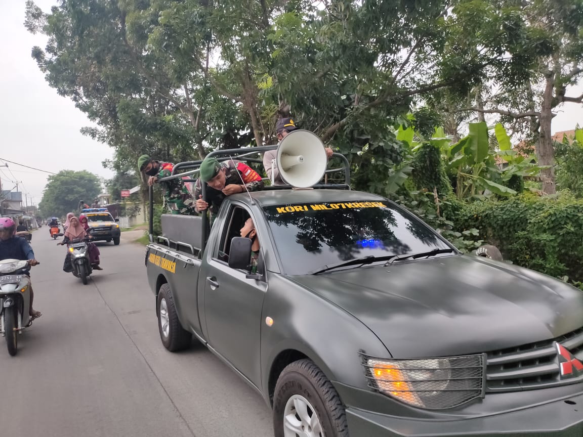 bukan di situ saja lanjut Danramil, menggunakan kendaraan dinas di lengkaoi dengan pengeras suara anggota Koramil 07/Kresek berkeliling ke wilayah Koramil 07/Kresek.