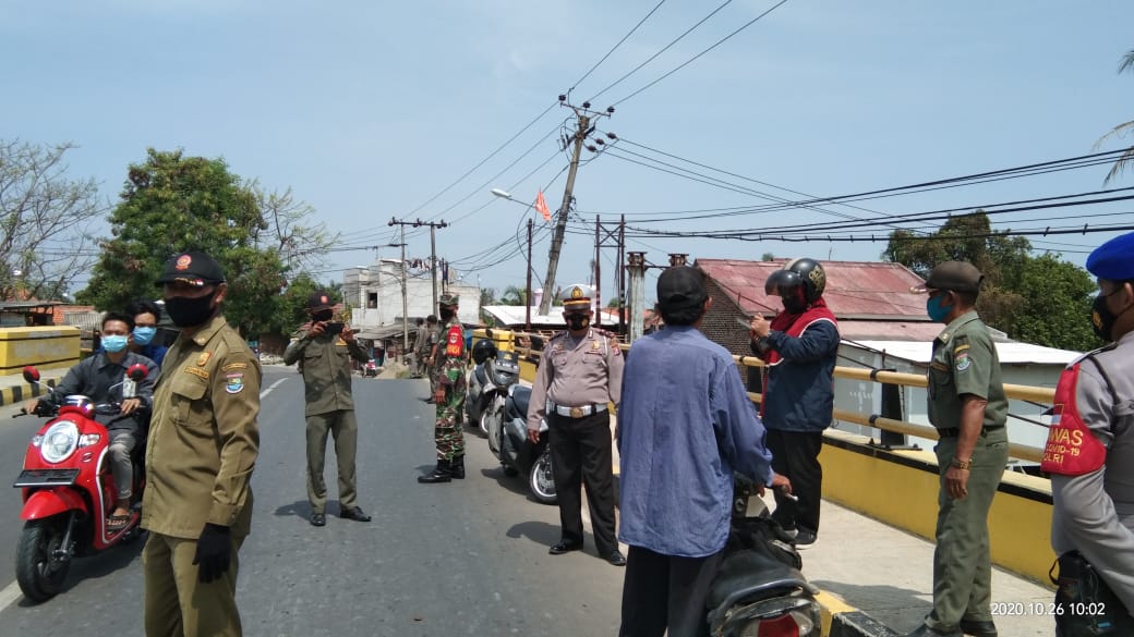 Kabupaten Tangerang – Upaya dalam memutus penyebaran virus Covid-19, Koramil 08/Kronjo Kodim 0510/Trs bersama tiga pilar melakukan operasi yustisi di perbatasan Koramil 08/Kronjo dan Koramil 09/Mauk di tepatnya Jembatan kuning Kronjo, Sabtu (12/12/2020).