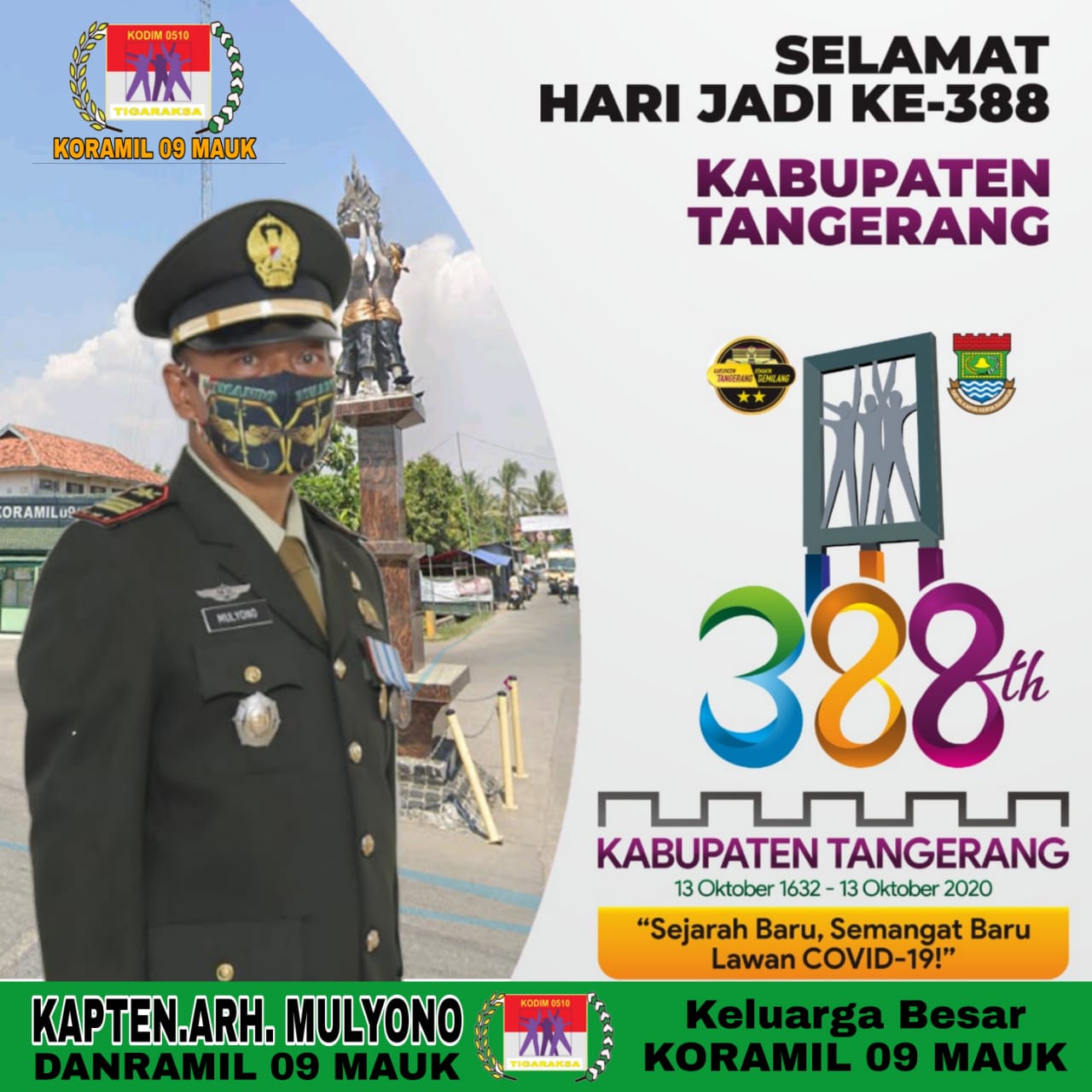 “Hari ini saya atas nama Jajaran Koramil 09/Mauk Kodim 0510/Trs mengucapkan Selamat HUT Kabupaten Tangerang ke-388, Semoga Kabupaten Tangerang terus gemilang,” ujarnya.