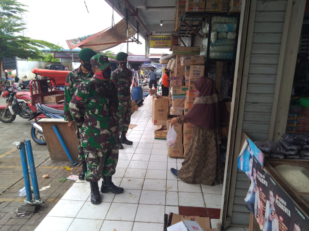 “Anggota Koramil 11/Pasar Kemis langsung turun ke pasar tradisional untuk menegakan PDMPK kepada para pengunjung pasar tradisional tetap melakukan protokol kesehatan dengan memakai masker, cuci tangan dan tetap menjaga jarak satu meter sampai dua meter,” ujarnya.