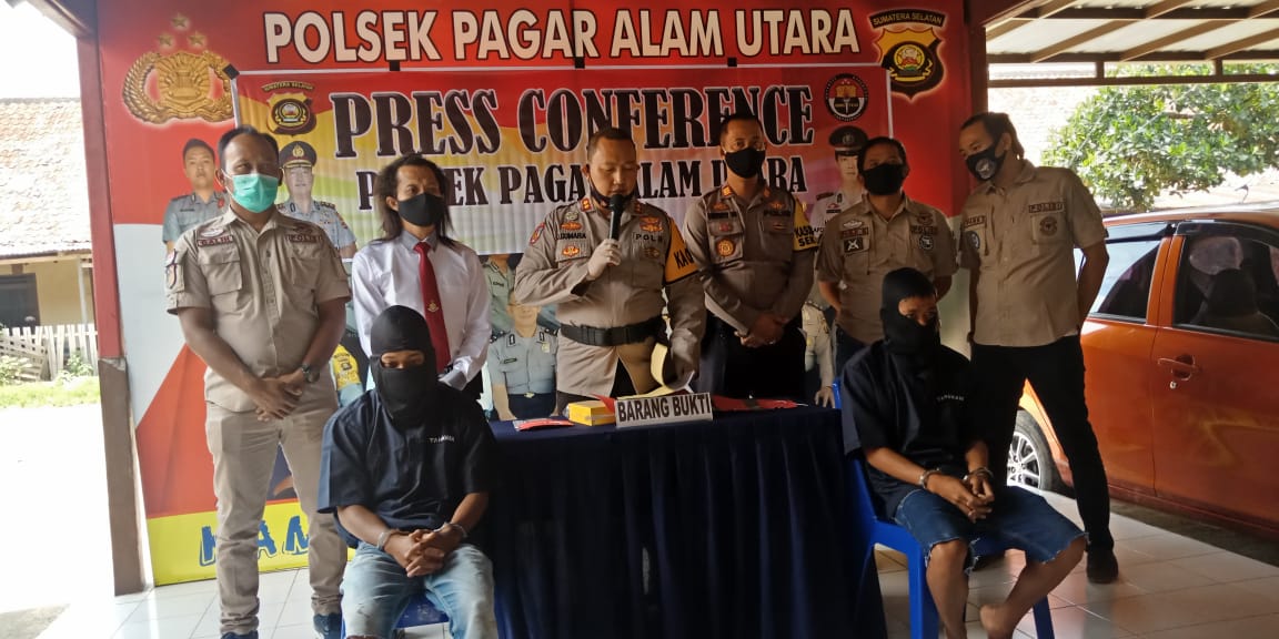 Dalam jumpa pers, Senin (5/10/20) di Mapolsek Pagaralam Utara. Kapolres Pagaralam, AKBP. Dolly Gumara didampingi Kapolsek Pagaralam Utara, AKP. Herry Widodo, SH yang memimpin langsung penangkapan kedua tersangka mengatakan bahwa kedua pelaku berinisial MB (19) dan AG (26) terpaksa dilumpuhkan dengan timas panas karena mencoba melarikan diri dan melawan petugas dengan cara menabrak salahsatu anggota.
