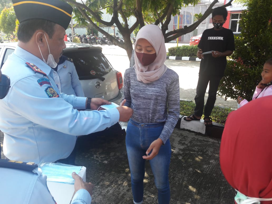 Jawa Barat – Lembaga Pemasyarakatan (Lapas) Narkotika kelas IIA Gunung Sindur, Bogor, Jawa Barat membagi-bagikan ratusan Masker gratis ke berbagai elemen masyarakat di seputaran Lapas, Selasa (20/10/2020).