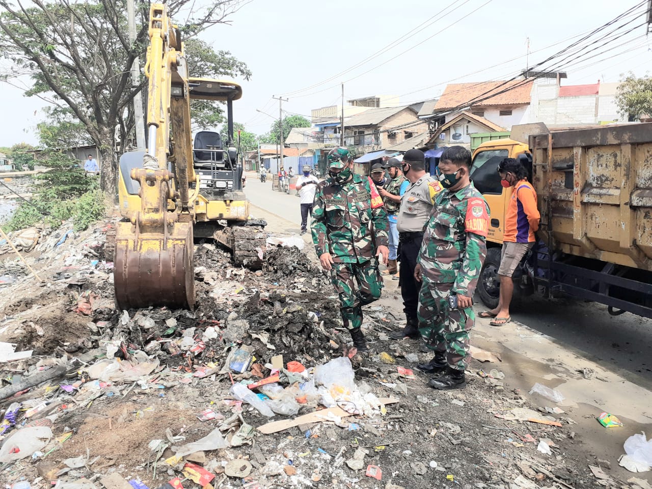 Kabupaten Tangerang – antisipasi musim penghujan di masa Pandemi Covid-19, Babinsa Koramil 01/Tln Kodim 0510/Trs di pimpin Serka Suparno dan 2 orang Babinsa lainnya, bersama Karang Taruna Kelurahan Dadap, melaksanakan Gotong Royong membersihkan sampah Kali Perancis di Kelurahan Dadap Kecamayan Kosambi Kabuoaten Tangerang, Minggu (04/10/2020).