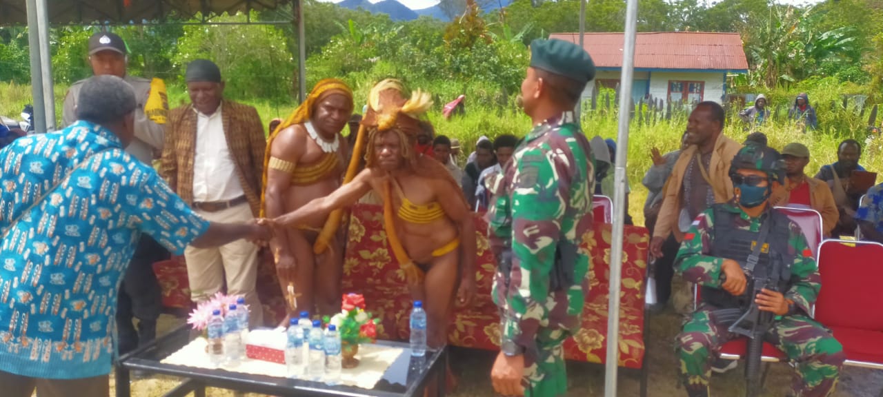 Dogiyai – Papua Satuan tugas pengamanan Daerah rawan Papua Yonif Raider 500/ Sikatan mengahadiri doa bersama masyarakat suku Dogiayai di lapangan Enabi goo Diatrik Kamuu Moanemani, Rabu (30 12/ 20).