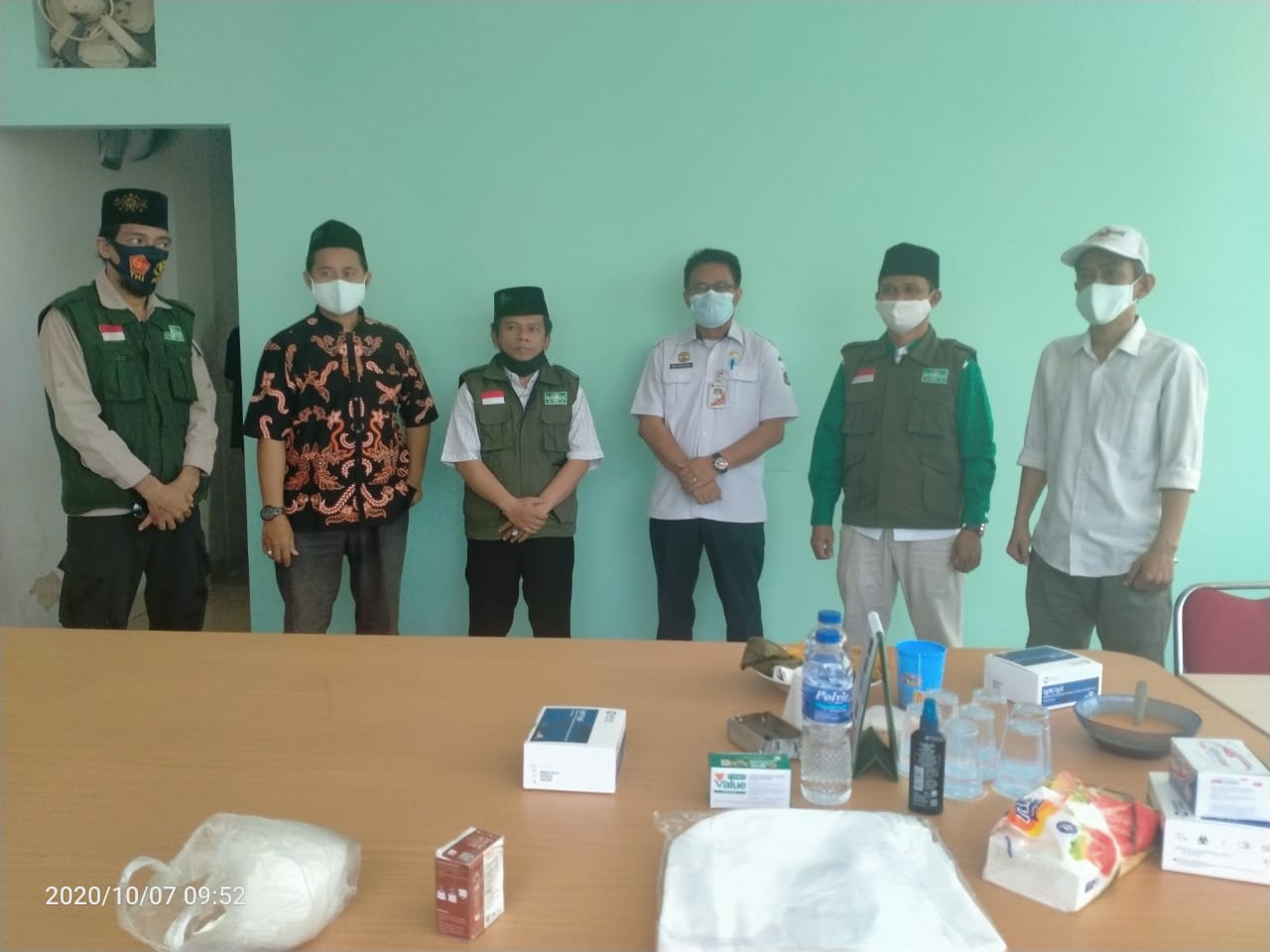 Nampak hadir tim relawan dari LPBI-NU DKI Jakarta yang memberikan bantuan alat kesehatan untuk tim Satgas Covid-19 PCNU Jakbar yang bertugas.