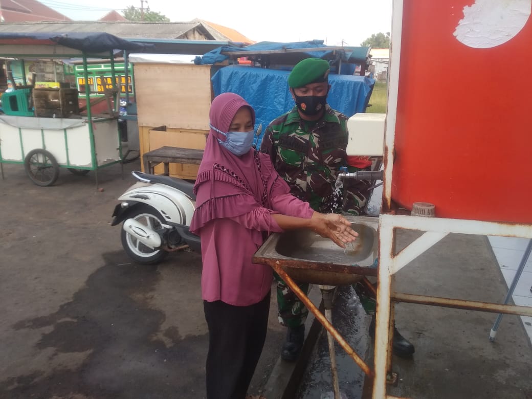Penegakan disiplin mematuhi protokol kesehatan anggota Koramil 09/Mauk masuk kedalam pasar untuk mengecek warga tidak memakai masker.
