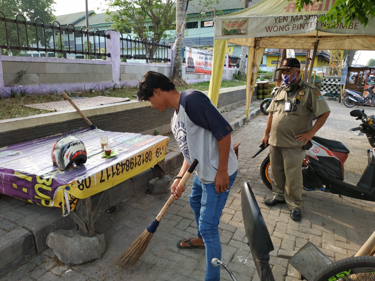 “Sanksi yang di terapkan berupa sanksi sosial dan sanksi fisik yang di berikan oleh petugas gabungan kepada warga yang melanggar, sanksi fisik berupa push Up,menyapu dan sanksi sosial adalah mengucapkan Pancasila serta di kalungkan tulisan himbauan gunakan masker Hal tersebut merupakan bukti sayangnya Satgas Protokol Kesehatan terhadap warga masyarakat supaya tidak mudah tertular oleh virus Covid-19,” ujarnya.